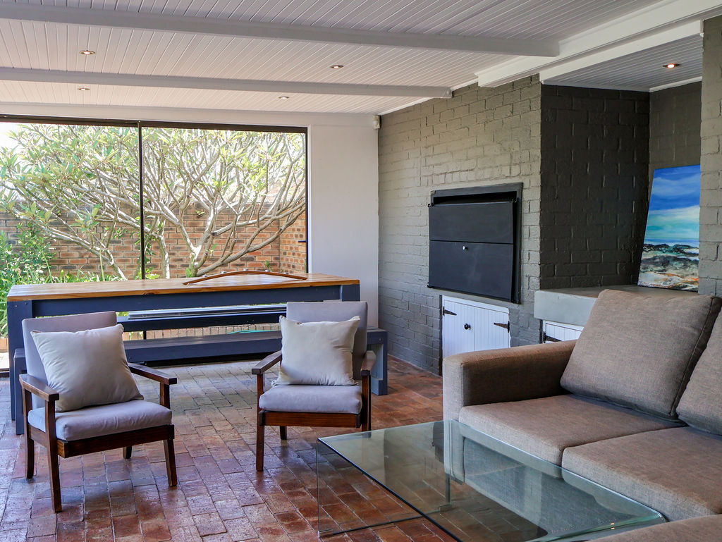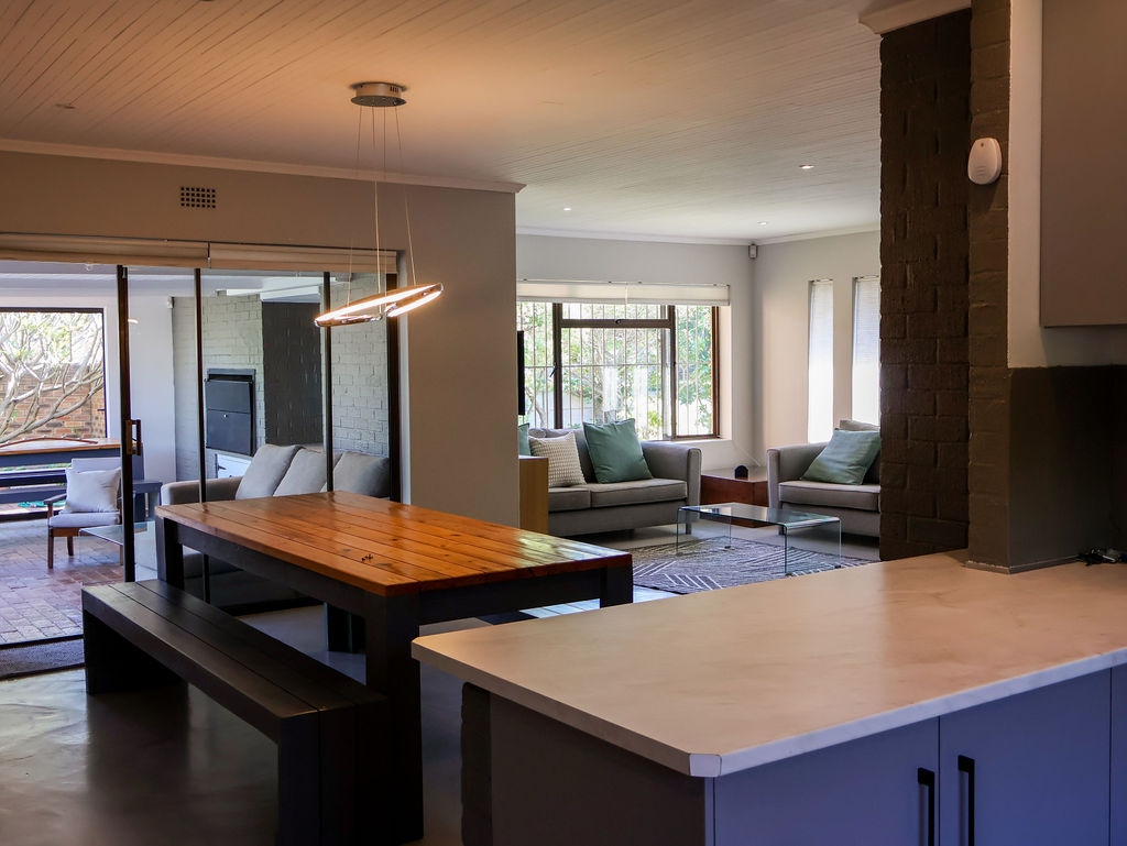 Welcome to House Nico, your holiday escape by the sea. Relax, unwind, and enjoy the beauty of the ocean and mountains from the comfort of our cozy retreat. 4 bedrooms with Queen-sized beds, 3 bathrooms, 3 garages. Master bedroom’s ensuite with bathtub. Living & dining area with open plan kitchen, scullery with additional large drinks fridge, washing machine and dishwasher. Braai room. Garden and patio with lounge set. Outdoor braai with prep space and sink.
